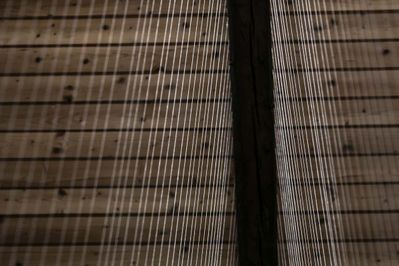 Die Künstlerin Elke Maier konzipiert eine Rauminstallation für das Architektur Haus Kärnten, deren Idee, Form und Realisierungsprozess untrennbar verbunden sind mit der Authentizität des Ortes in all seiner Vielfalt und Komplexität, die von daher einzigartig und auf keinen anderen Ort übertragbar ist und mit der sie ganz bewusst in den Raum eingreift. Mit Hilfe eines einfachen Materials, feinstes weißes Baumwollgarn, entsteht ein einzigartiges auratisches Wechselspiel zwischen Licht, Raum und Materie. Mit einem Minimum an Material und Gewicht gelingt es ihr, voluminöse Raumlandschaften von atmosphärischer Dichte zu erzeugen. Dabei handelt es sich nicht um punktuelle Interventionen, sondern um eine Entwicklung des Werkes von Anfang an in kontinuierlichem Dialog mit dem Raum und Licht. Die Fäden schaffen einen von der Raumschale, den Wänden völlig losgelösten, selbstständigen Raumkörper. (Nora Leitgeb)