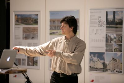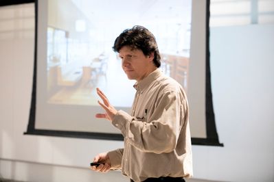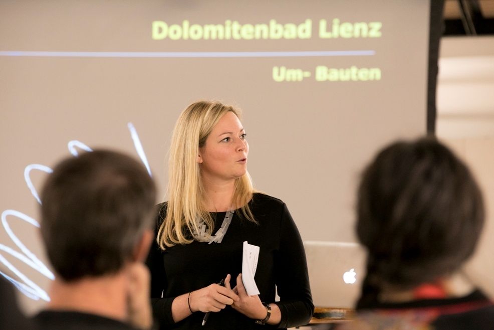 Hans Peter Machné erzählt in seinem Vortrag über Herausforderungen im Vorfeld und Erfahrungen bei der Sanierung des Dolomitenbades in Lienz.
