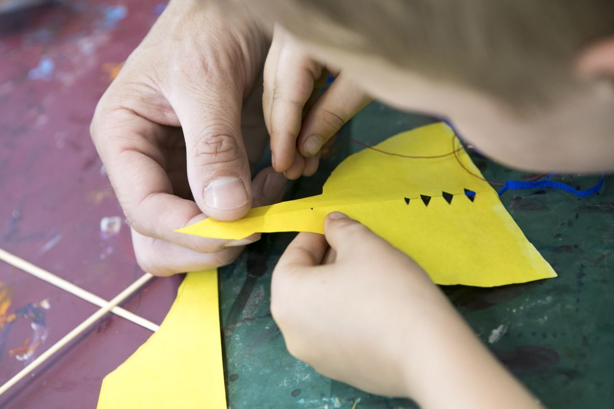 Workshop Kinder - Es fliegt, es fliegt ein Überflieger! Kinder bauen Drachen zum Mitnehmen nach einer Vorlage der Drachenbau- Künstlerin Anna Rubin.
