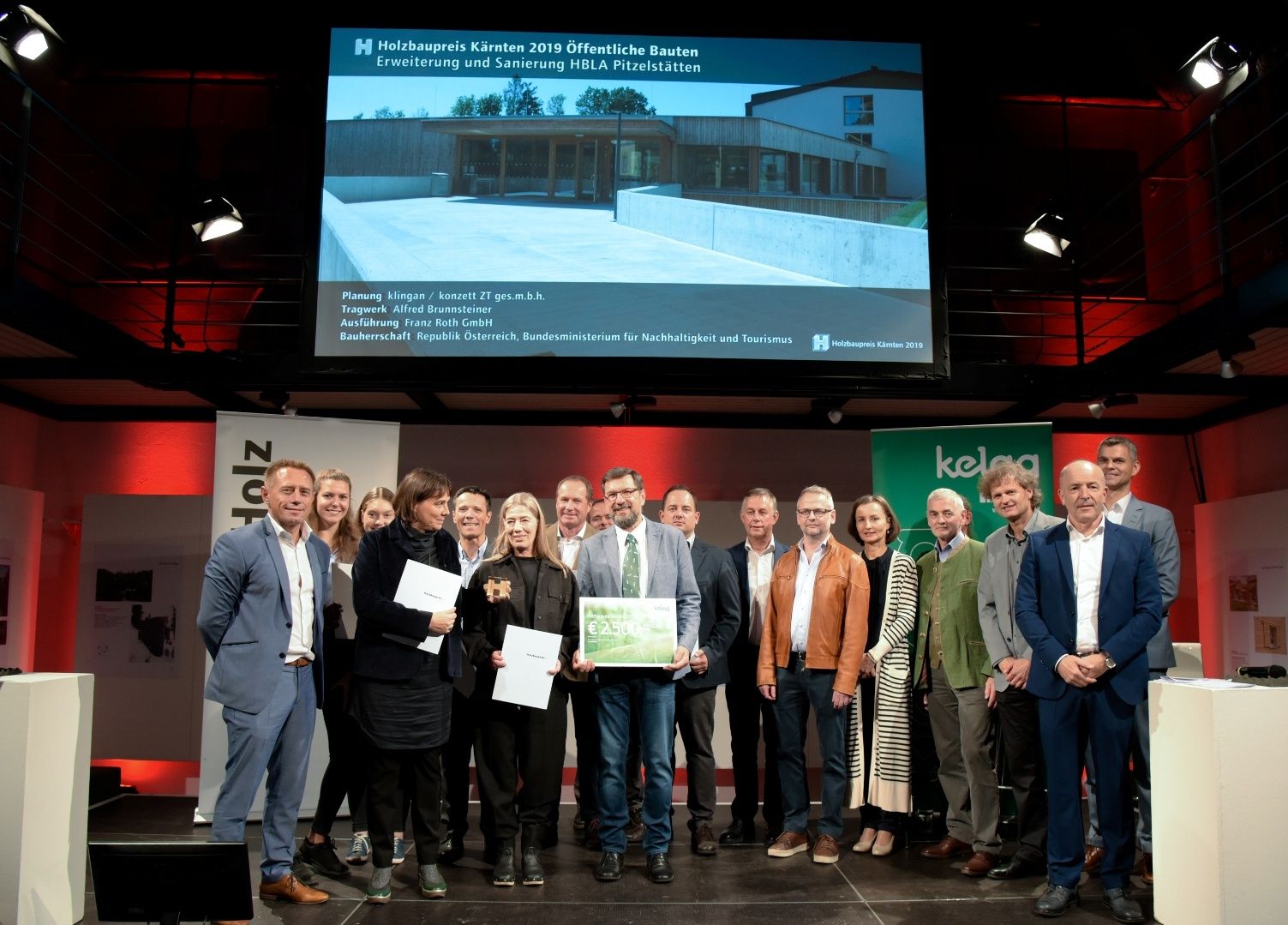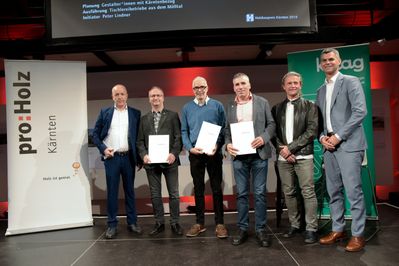 Rund 300 am Holzbau Interessierte kamen in das Architektur Haus Kärnten in Klagenfurt, um dabei zu sein, wenn die Preisträger bekannt gegeben werden. Die Juroren, Architekt Raimund Wulz, Tragwerksplaner Conrad Brinkmeier und Holzbaumeister Karl Niedermayer hatten die Preisträger aus insgesamt 89 Einreichungen gekürt. Je einen Holzbaupreis erhielten die Erweiterung und Sanierung der HBLA Pitzelstätten sowie die „Häuser im Wald“ auf der Turrach. Zwei Einfamilienhäuser wurden mit einer Auszeichnung bedacht und weitere Bauten, darunter eine Radbrücke über die Möll und eine Initiative für Möbeldesign, wurden mit einer Anerkennung ausgezeichnet.