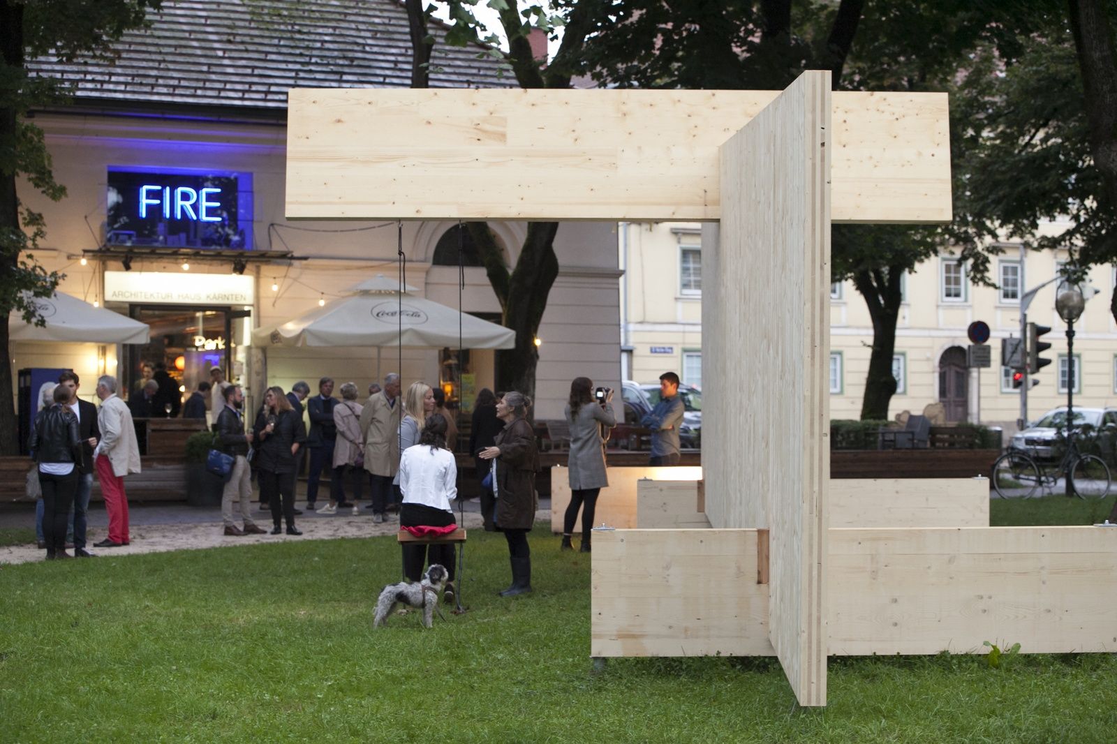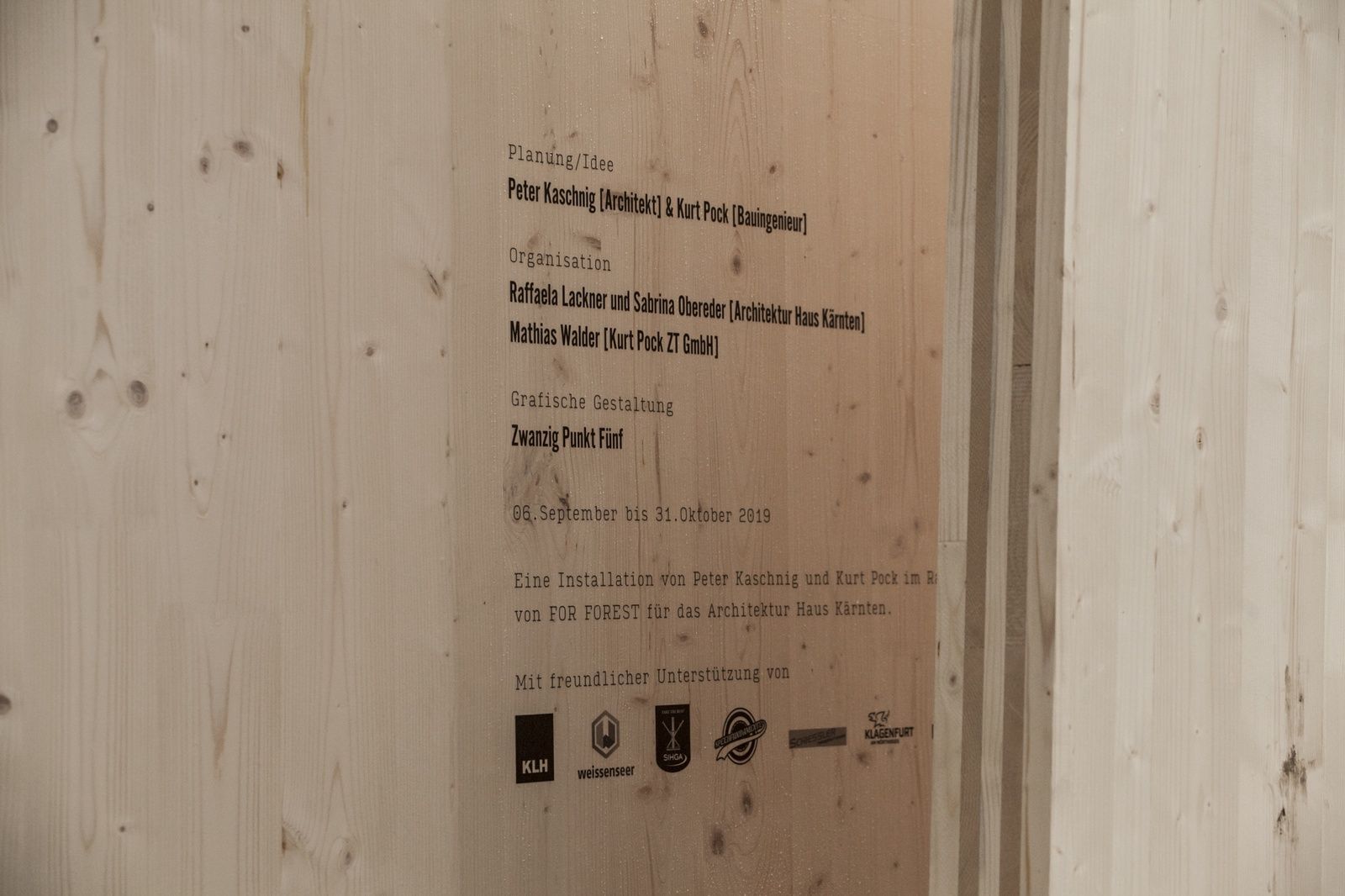 Eine raumgreifende Holz-Installation von Peter Kaschnig und Kurt Pock vor dem Architektur Haus Kärnten zieht interessierte vom Außen- in den Innenraum und lässt neue Blickwinkel zu. Holz wird zum Ausstellungsstück und zeigt was es kann. Zur Langen Nacht der Museen wird zum Außenraum auch der Innenraum bespielt und ein Kinderworkshop lädt die BesucherInnen ein kreativ zu werden.