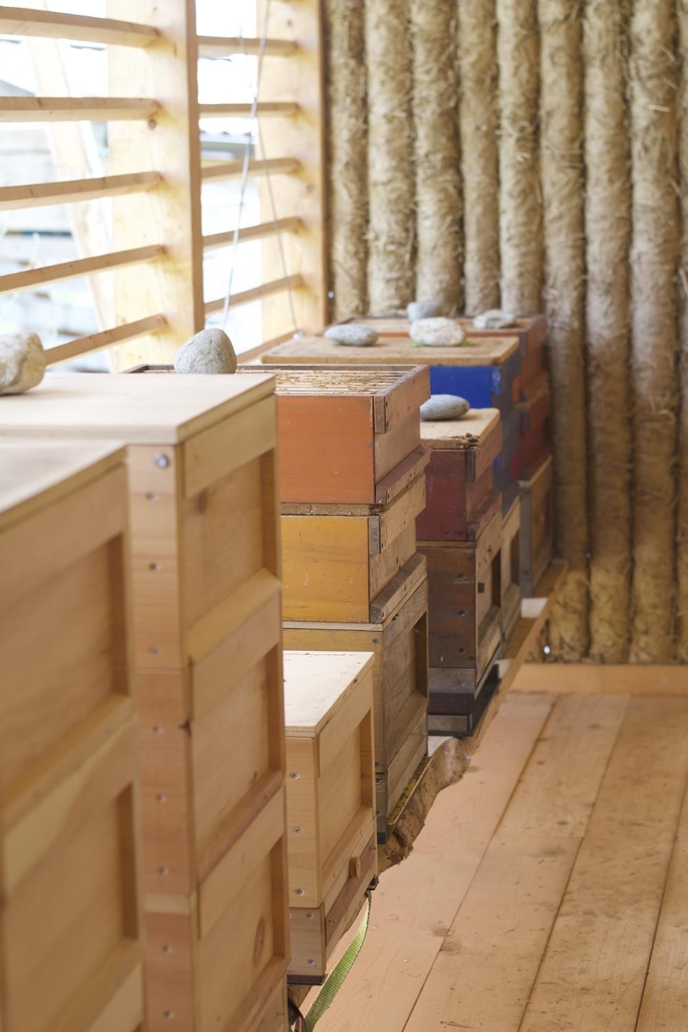 Dieser Aufgabenstellung hat sich Tobias Küke in seiner Diplomarbeit angenommen. Der Prozess beginnt beim intensiven Studium der Lebensweise der Bienen und deren Bedürfnisse sowie der Analyse der Arbeit eines Imkers und der theoretischen und praktischen Auseinandersetzung mit den traditionellen Baustoffen Lehm und Holz, die sich für den geplanten Selbstbau als Konstruktionsmaterial am geeignetsten erwiesen.