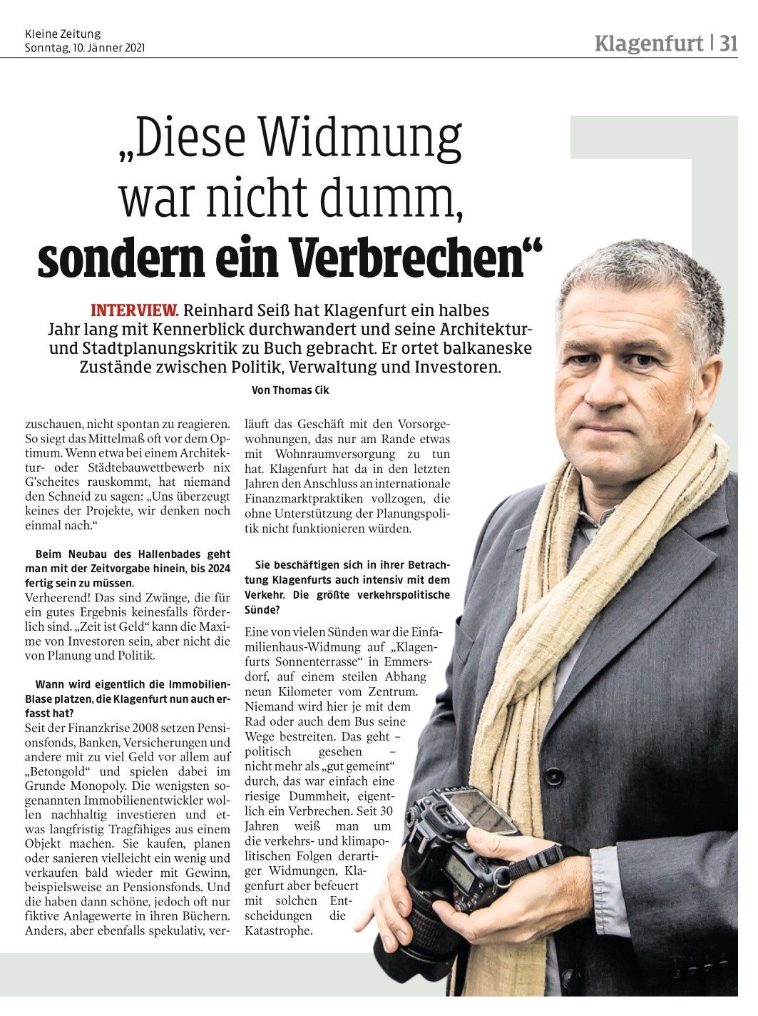 Reinhard Seiß (50), promovierte als Raumplaner an der TU Wien. Seither ist er als Stadtplaner, Filmemacher und Fachpublizist aktiv.