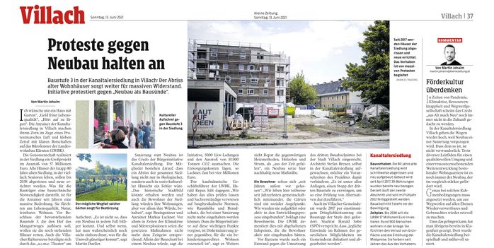 Kleine Zeitung: "Proteste gegen Neubau halten an"