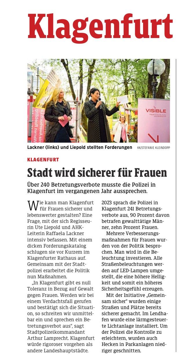 Kleine Zeitung: „Stadt wird sicherer für Frauen“