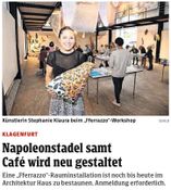 Zur Eröffnung hat die Kärntner Musikformation Klakradl eingespielen, bestehend aus dem Kabarettduo RaDeschnig, sowie dem Jazz /Worldmusic Duo [:klak:]. Martina Rösler, auch eine aus Kärnten stammende Künstlerin, Tänzerin und Choreografin hat die Kunstinstallation teilweise mit einer tänzerischen Performance ergänzt. Die Laudatio zur Rauminstallation kam von Andrea Schurian.