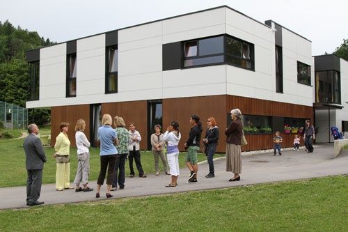 15:00 Erweiterung Kindergarten und Hort am Schulzentrum Moosburg . Dieser Holzbau stellt einen wichtigen Beitrag der Gemeinde Moosburg auf dem Weg zur Kinder- und Familiengemeinde im Kärntner Zentralraum dar und wurde vom Architekturbüro nonconform architektur vor ort geplant. Es führte Arch. Roland Gruber