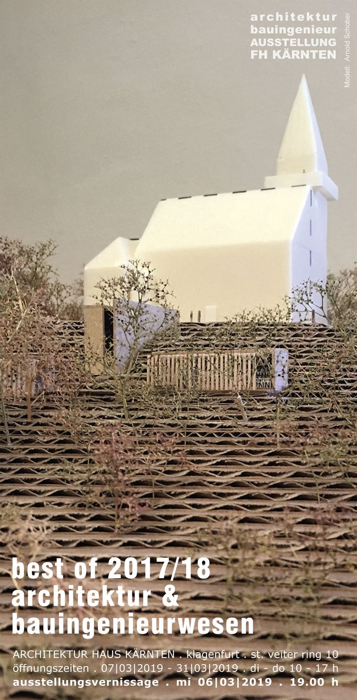 AusstellungDie Studiengänge Architektur und Bauingenieurwesen der FH Kärnten stellen eine Auswahl an Diplomarbeiten, ergänzt durch hervorzuhebende Bachelorarbeiten, in einer Ausstellung im Architektur Haus Kärnten vor.