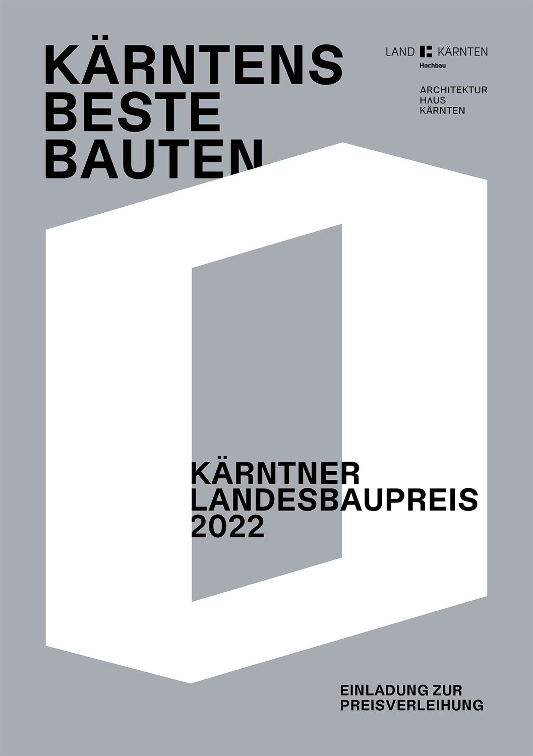 Das Land Kärnten, vertreten durch Frau Landeshauptmann- Stellvertreterin Mag.a Dr.in Gabriele SCHAUNIG-KANDUT und das Amt der Kärntner Landesregierung, Abteilung 2 – Finanzen, Beteiligungen und Immobilienmanagement, UAbt. Hochbau, lädt zur Verleihung vom Kärntner Landesbaupreis 2022 ein: am Mittwoch, 01.03.2023 um 18.00 Uhr im Architektur Haus Kärnten