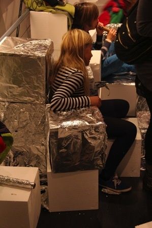 weiterlesen …Wie jedes Jahr veranstaltete der Architektur-Spiel-Raum-Kärnten einen besonderen Kinderworkshop zur Langen Nacht. Unter der Leitung von Architekt Gerhard Kopeinig wurden mit Alufolie begehbare, reflektierende Nischen und Möbel auf der Galerie des Architektur Hauses mit den Kindern geschaffen, die sich ständig durch neue "Zubauten" und kreative Kinderhände transformierte. Selbst das Geländer der Galerie wurde zum Gestaltungsobjekt.