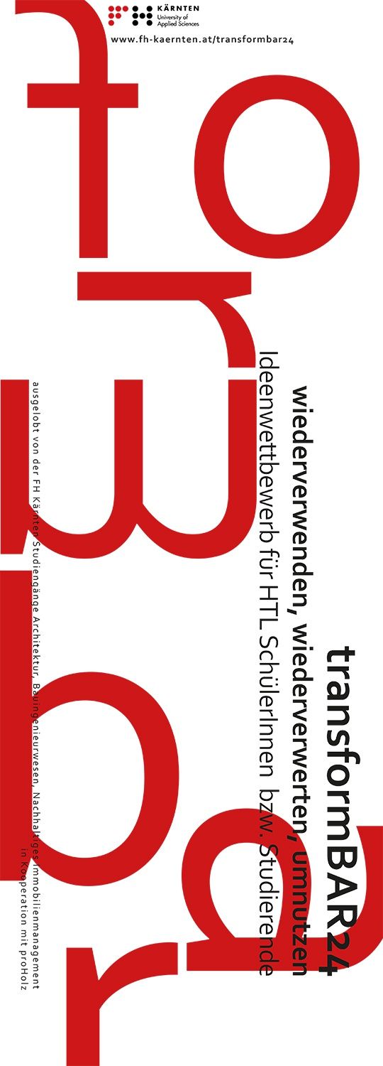 Bekanntgabe der ErgebnisseGanz im Sinne der Schwerpunkte des Studienganges Architektur an der FH Kärnten - Bauen mit Bestand und Bauen mit Holz - soll durch Wiederverwenden, Wiederverwerten, Umnutzen und Umbauen von bestehenden Thekenelementen zeitgemäße Lösungen für eine Bar+ von HTL Schüler:innen bzw. Architektur Studierende im Zuge des Ideenwettbewerbs transformBAR24 entwickelt werden.