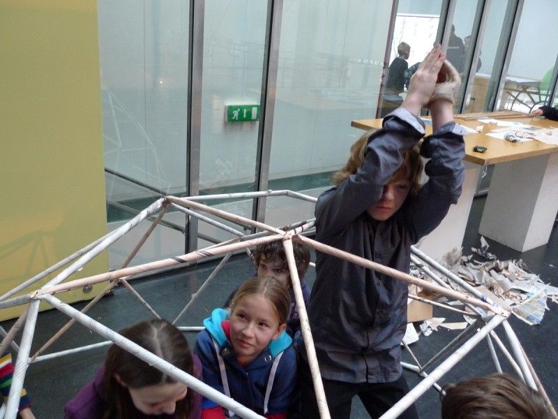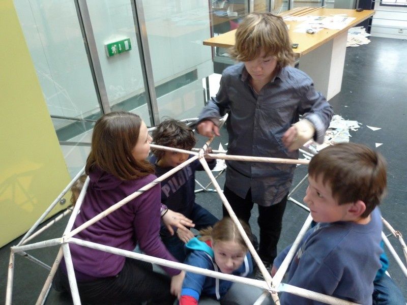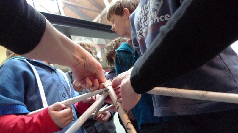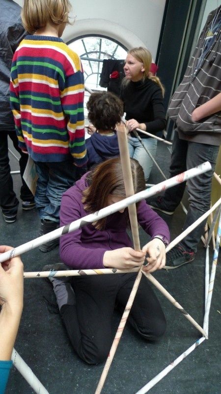 Aus gewöhnlichem Zeitungspapier können mit Hilfe statisch-konstruktiver Grundkenntnisse tragfähige, stabile Stabtragwerke hergestellt werden - was so trocken klingt, kann dennoch viel Spaß machen: Die Kinder experimentieren nach einer kurzen Einführung selbst und finden auch meist selbst die idealen Grundformen heraus, mit denen man große räumliche Fachwerke bauen kann.