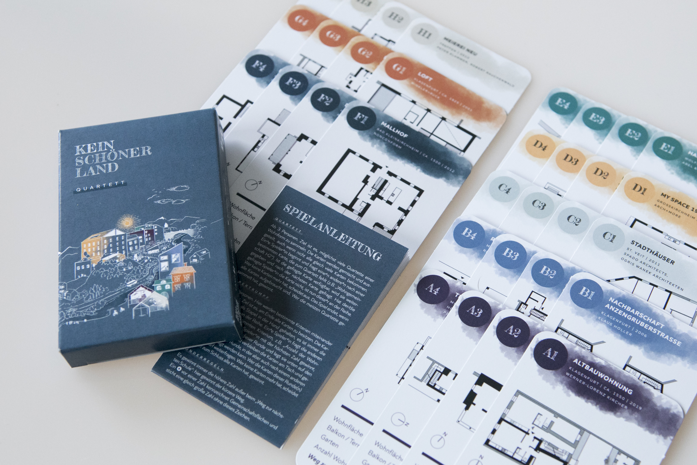 Worauf sind die Kärntnerinnen und Kärntner in ihrem Land stolz? Berge, Seen, ... und die Kärntner Baukultur. Das ist das Ziel einer breiten Vermittlungsinitiative in den Baukulturellen Leitlinien des Landes Kärnten. Um gute Baukultur zu vermitteln, braucht es die Möglichkeit des Vergleichs und gute Beispiele. Gelungene Baukultur schafft Geschichten, die erzählt werden sollen. Aus diesen Gründen widmen sich gleich zwei von 15 Leitlinien der Baukulturvermittlung. Neben einer Best-Practice Sammlung wird eine „Schule des Sehens und Tuns“ für die Kärntner Baukultur etabliert. Im Rahmen vom BAUKULTURJAHR 2021 in Kärnten wird ein weiterer Baustein in der Vermittlung durch das neu entwickelte Baukulturspiel „Kein schöner Land“ gesetzt. Spielerisch und vielschichtig bilden baukulturelle Themen die Basis für ein Brettspiel, ein Aktivitäten-Buch und ein Wohnformen-Quartett. Eingesetzt in Schulen, Gemeinden und Familien soll durch „Kein schöner Land” mehr Bewusstsein für Baukultur geschaffen werden.