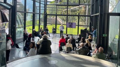 Begleitet von Günther Domenig-Experten Architekt Ernst Roth führt die Exkursion zu ausgewählten Bauten Günther Domenigs in Kärnten und in die Ausstellung im Architektur Haus Kärnten, sowie in das Museum Moderner Kunst Kärnten.