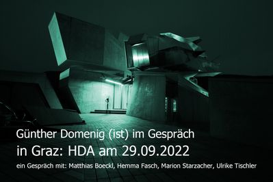 Die Vortrags- und Gesprächsreihe mit Zeitgenoss:innen, Expert:innen und Architekt:innen nimmt eine aktuelle Verortung des Werks Günther Domenig vor.