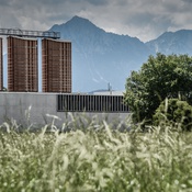 Von der neuen Autobahnmeisterei bei Salzburg-Mitte sind von außen nur die 25 Meter hohen Türme der Salzsilos zu sehen. Im Inneren bestimmt das Spiel der Materialien Glas, Beton und Aluminium den Charakter der vier, um einen Innenhof angeordneten Baukörper.