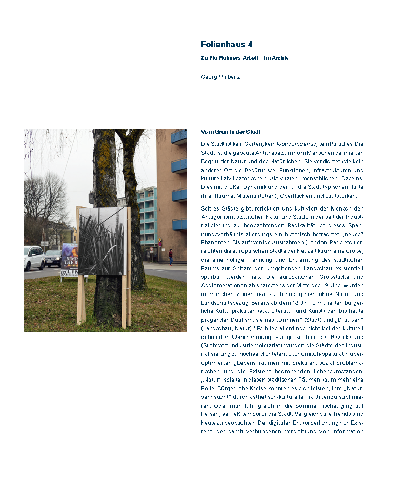 PublikationSeit Sommer 2016 bietet das afo architekturforum oberösterreich ArchitektInnen und KünstlerInnen die Möglichkeit, jeweils vier bis sechs Wochen in der hauseigenen Atelierwohnung zu leben und zu arbeiten. Die Auseinandersetzung während des Aufenthalts fokussiert auf den Themenkomplex Raum, Architektur und Stadt. Die bisherigen Gäste waren die Szenografin Nadia Schrader (D), die bildende Künstlerin Josephine Sweeney (UK), der Architekt und Urbanist Martin Benavidez (ARG) und der Fotokünstler Pio Rahner (D).