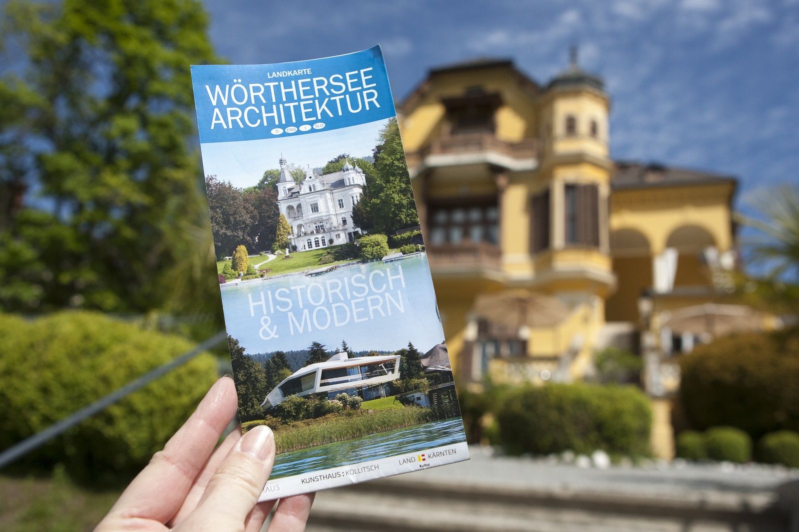 PublikationFür die neue Karte 2019 werden 30.000 Stück gedruckt. Die Karte wurde adaptiert und neu gestaltet (Nummerierung, Kartendarstellung, Anordnung Nordufer/Südufer, neue Villen, etc. Die Faltkarte ist mehrsprachig (Deutsch, Englisch, Italienisch, Slowenisch) und enthält je Objekt die Basisinformationen (Architekt, Baujahr, Lage,…) und einen kurzen Text zur Bedeutung in der Architektur. Gezeigt werden 54 historische und moderne Villen/Bauten jeweils mit Foto vom See. Die Karte wird in Kärnten gedruckt und gefaltet.