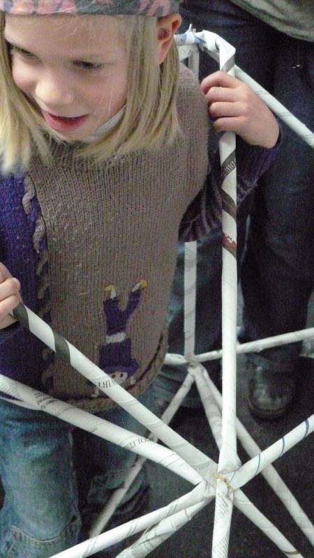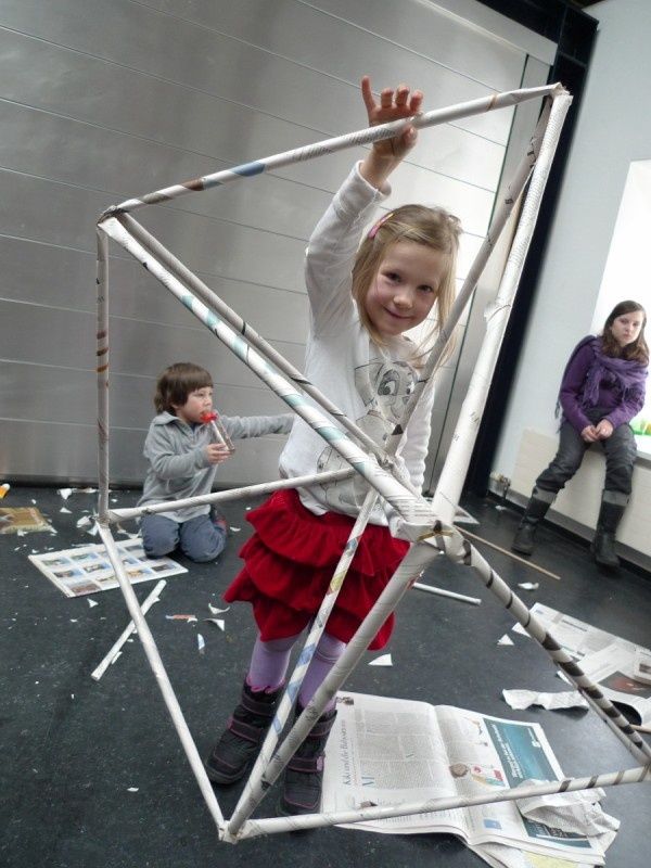Aus gewöhnlichem Zeitungspapier können mit Hilfe statisch-konstruktiver Grundkenntnisse tragfähige, stabile Stabtragwerke hergestellt werden - was so trocken klingt, kann dennoch viel Spaß machen: Die Kinder experimentieren nach einer kurzen Einführung selbst und finden auch meist selbst die idealen Grundformen heraus, mit denen man große räumliche Fachwerke bauen kann.