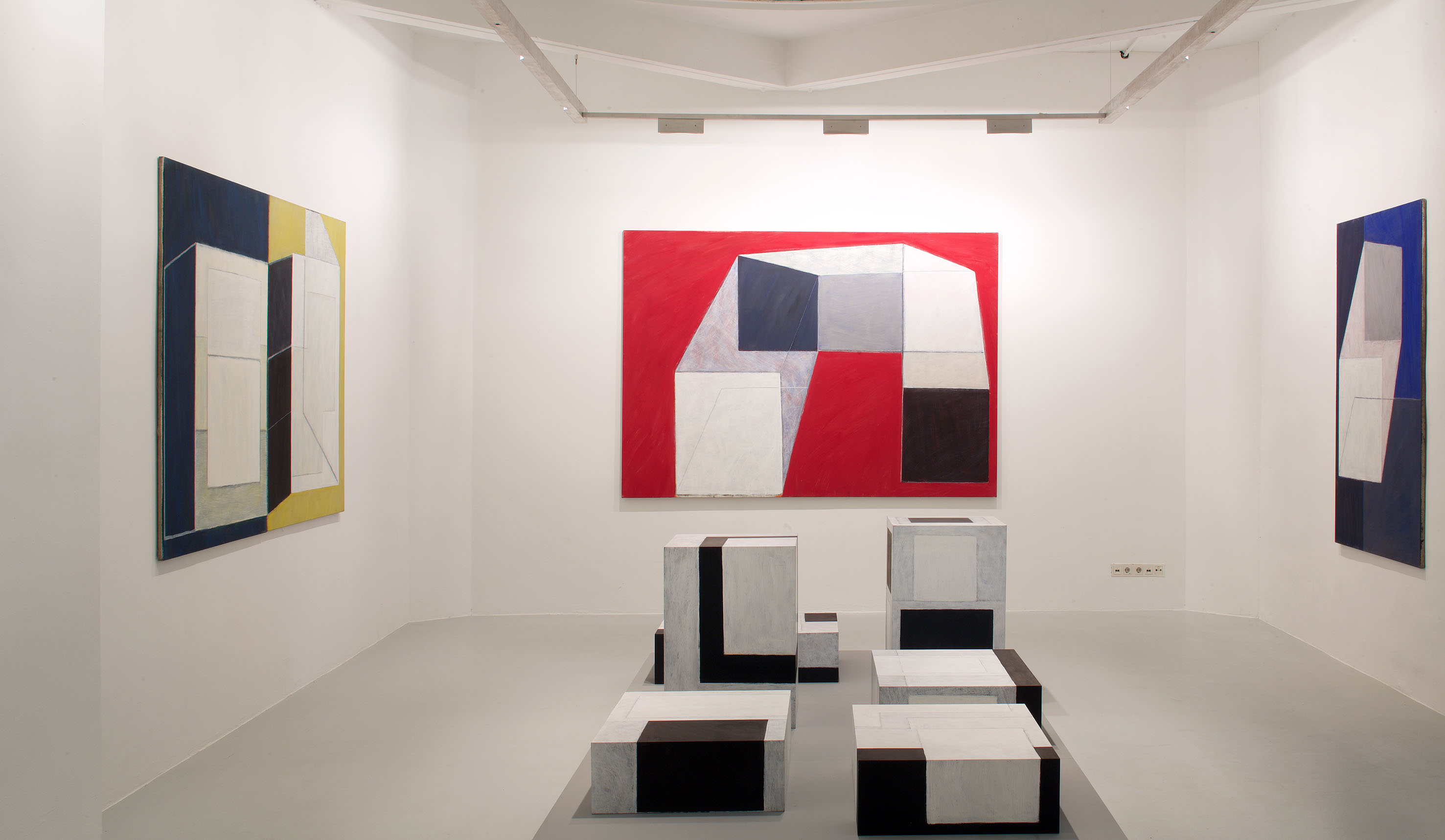 In "Raumbilderwelten" sind eigens für die Ausstellungsräume des aut konzipierte Bilder und dreidimensionale Bildobjekte zu sehen, die nicht nur dem Verhältnis zwischen zwei- und dreidimensionalem Raum im Bild, sondern auch der Wirkung der Bilder auf den Raum nachgehen.