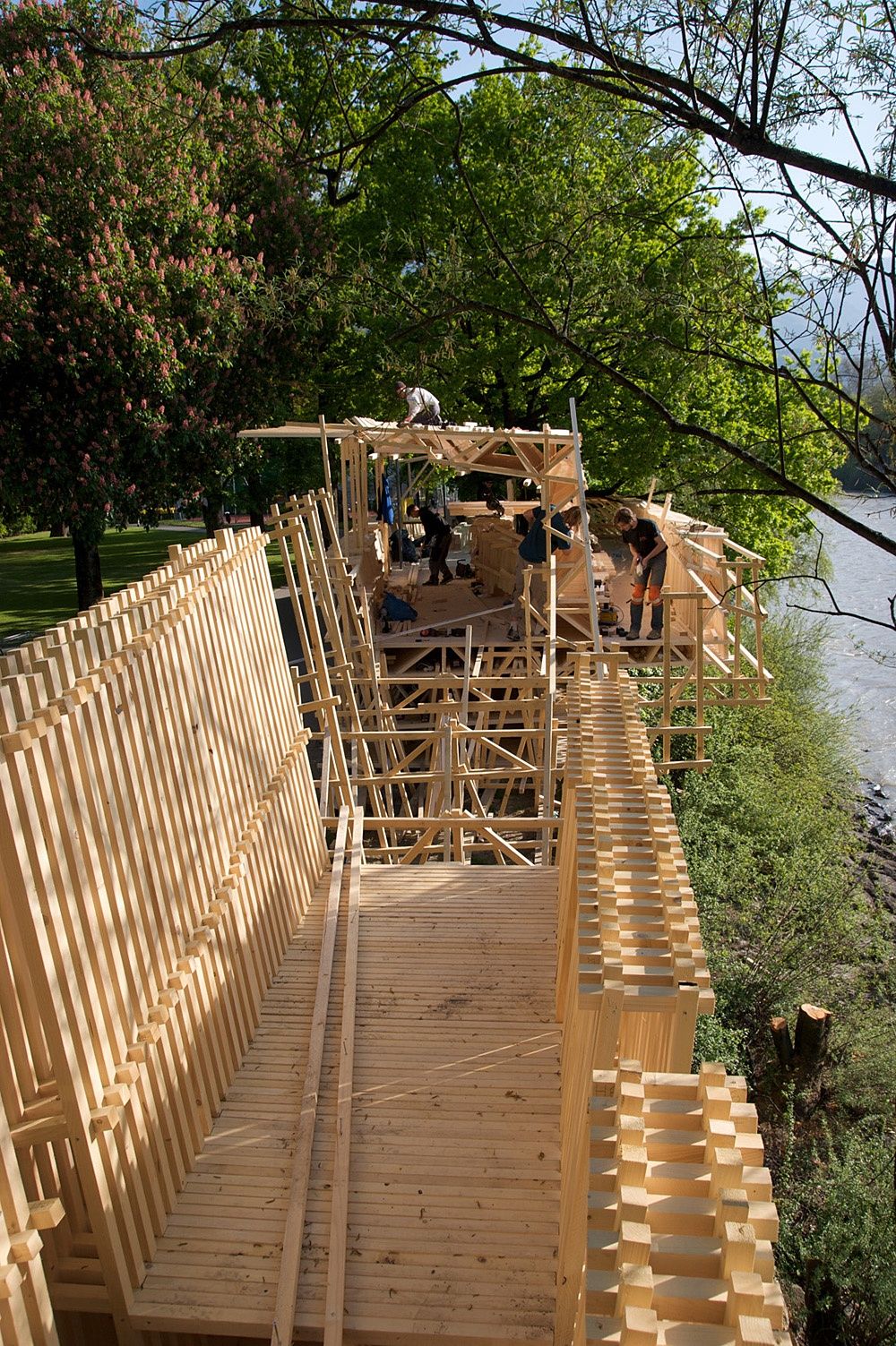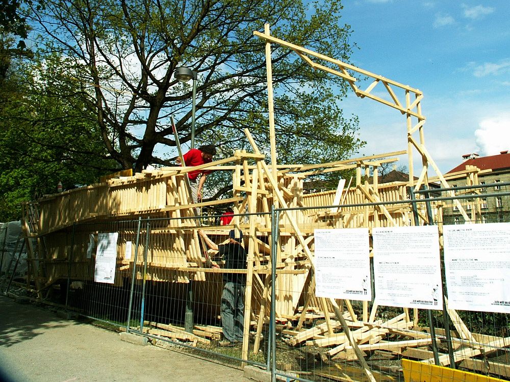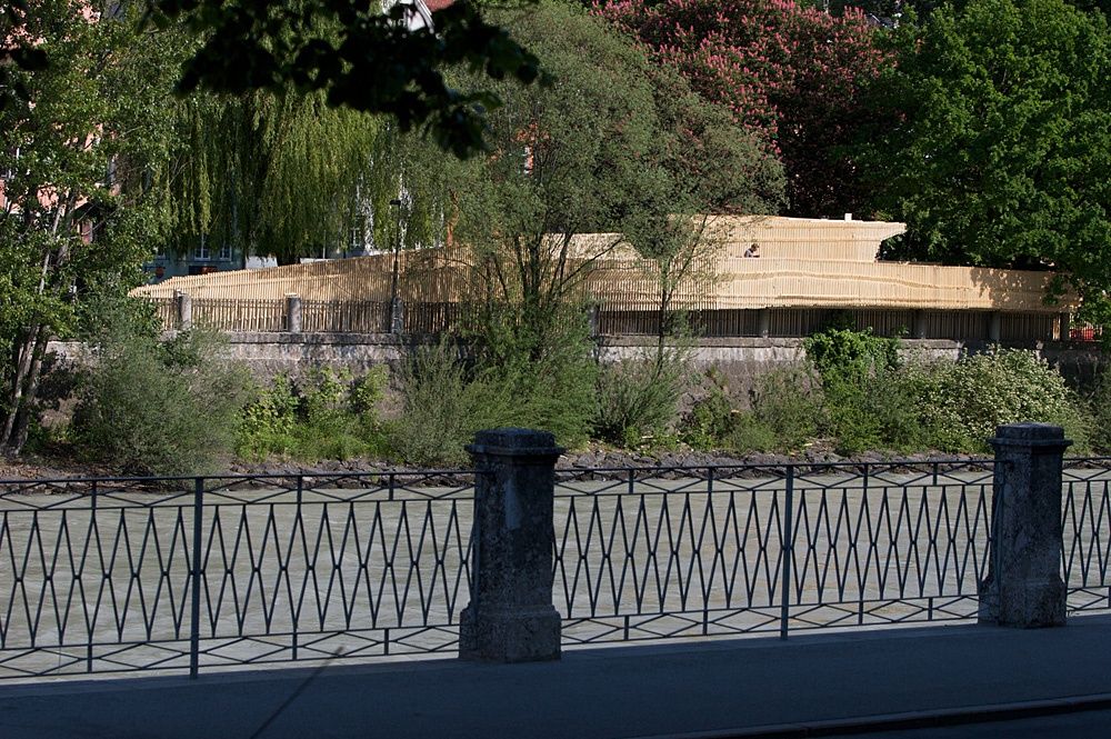 Um neben Führungen und sonstigen Veranstaltungen Architektur auch 1:1 erlebbar zu machen, beauftragte das aut erstmals 2008 im Rahmen der Architekturtage die Errichtung eines temporären Bauwerks im öffentlichen Raum. Ab April konnte im Walther-Park mitverfolgt werden, wie aus einfachen Holzlatten eine Architekturskulptur entstand. Die von columbosnext geplante und gebaute Plattform „... ich will an den Inn“ stand dann zwei Jahre lang der Bevölkerung als frei zugängliche Infrastruktur zur Verfügung.