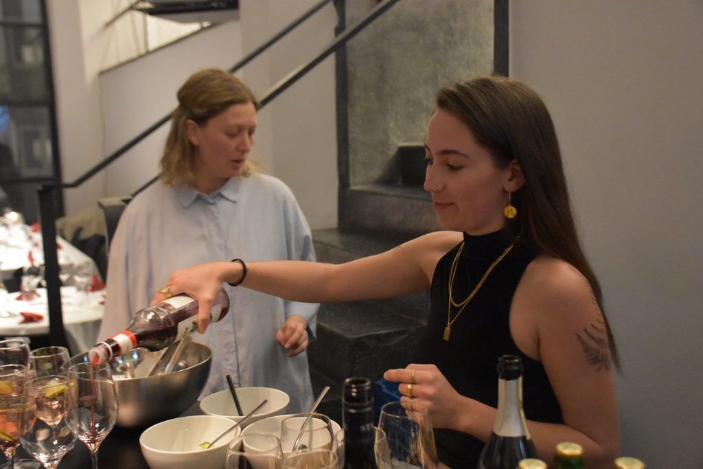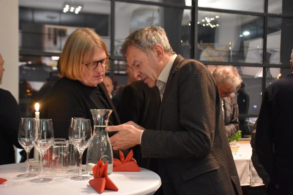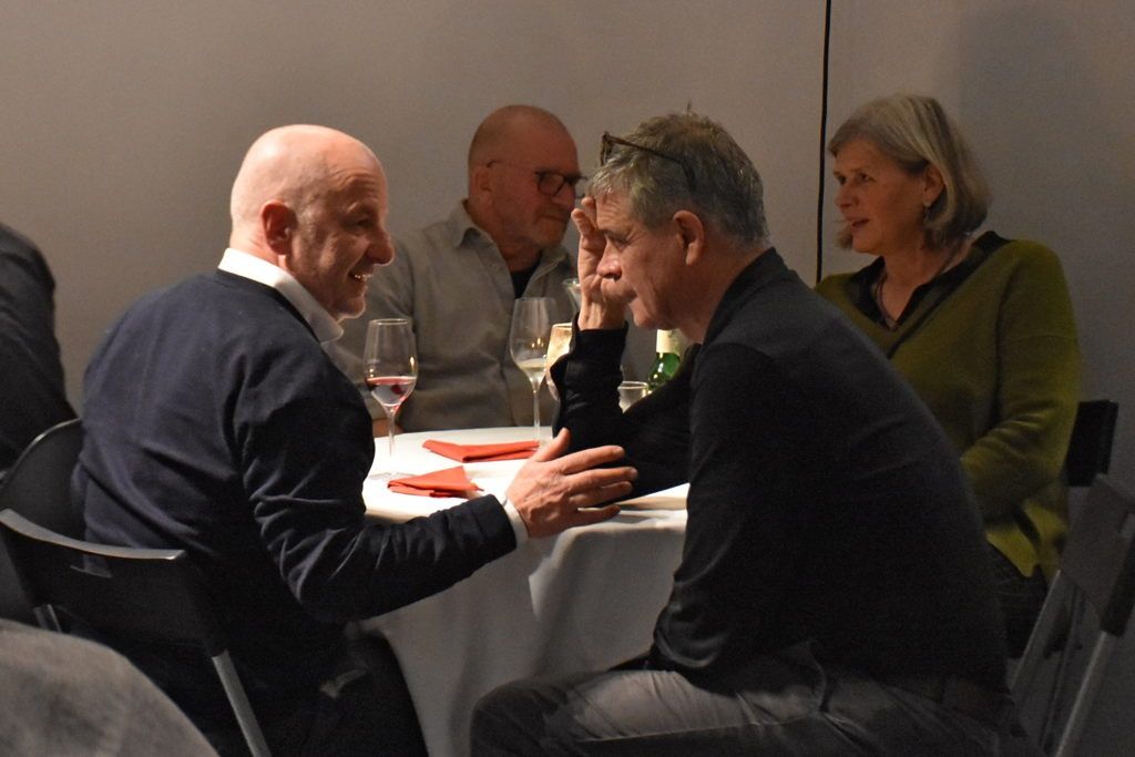 Da in diesem Jahr auch das 30-jährige Dienstjubiläum von Arno Ritter gefeiert wurde, haben sich die Köch:innen Barbara Poberschnigg, Iris Reiter und Alexander Topf bei den Hauptspeisen von der klassischen Wiener Küche inspirieren lassen. So gab es einen traumhaften Tafelspitz mit den dazugehörigen Beilagen wie Schichtkartoffeln, Cremespinat, Apfelkren und Schnittlauchsauce, Wiener Schnitzel mit dreierlei Kartoffelsalat (zwei davon von Werner Burtscher) und selbstgemachter Preiselbeermarmelade sowie Kürbisgulasch mit Semmelknödeln als vegetarische Alternative. Erich Wucherer steuerte mit Bachsaibling an Avocadocreme und Rote-Bete-Radicchio-Salat die Vorspeisen bei, Judith Prossliner und Jonas Längenfelder sorgten für den süßen Abschluss. Elias Walch begrüßte unsere Gäste wie schon in den vergangenen Jahren mit einem Aperitif, diesmal einem Blaubeer-Spritz, und mixte zu späterer Stunde Gin-Fizz, den Lieblingsdrink von Arno Ritter.