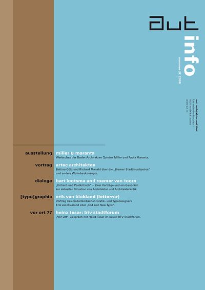 Die Ausgabe 5/06 der Programmzeitschrift aut: info mit Hintergrundinformationen zur Ausstellung „Miller & Maranta: Werkschau“ und zum Programm des aut zwischen September und November 2006.