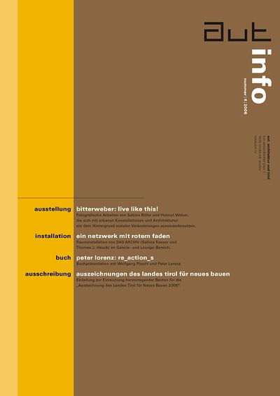 Die Ausgabe 4/06 der Programmzeitschrift aut: info mit Hintergrundinformationen zur Ausstellung „BitterWeber: Live like this!“ und zum Programm des aut zwischen Juni und September 2006.