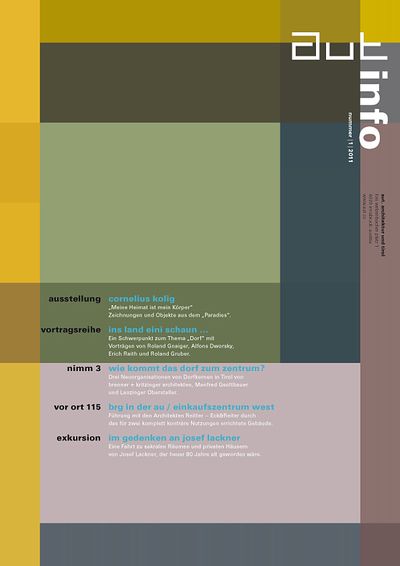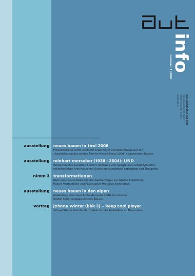Die Ausgabe 3/07 der Programmzeitschrift aut: info mit Hintergrundinformationen zu den Ausstellungen „Wettbewerb Sternbrauerei Salzburg“ und „genius loci“ sowie zum Programm des aut zwischen Mai und Juni 2007.