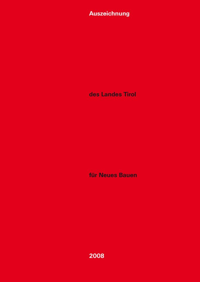 Seit 1996 zeichnet die Kulturabteilung im Amt der Tiroler Landesregierung gemeinsam mit der Kammer der Architekten und Ingenieurkonsulenten für Tirol und Vorarlberg - Sektion Architekten, der Zentralvereinigung der Architekten Österreichs - Landesverband Tirol und aut. architektur und tirol alle zwei Jahre vorbildliche Bauten in Tirol aus. Zur „Auszeichnung des Landes Tirol für Neues Bauen 2008“ konnten in Tirol ausgeführte Bauten eingereicht werden, die von ArchitektInnen bzw. IngenieurInnen geplant wurden und zwischen 2006 und 2008 fertig gestellt wurden.