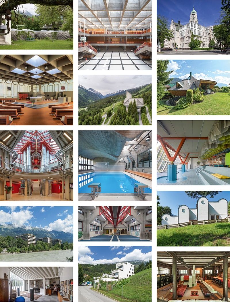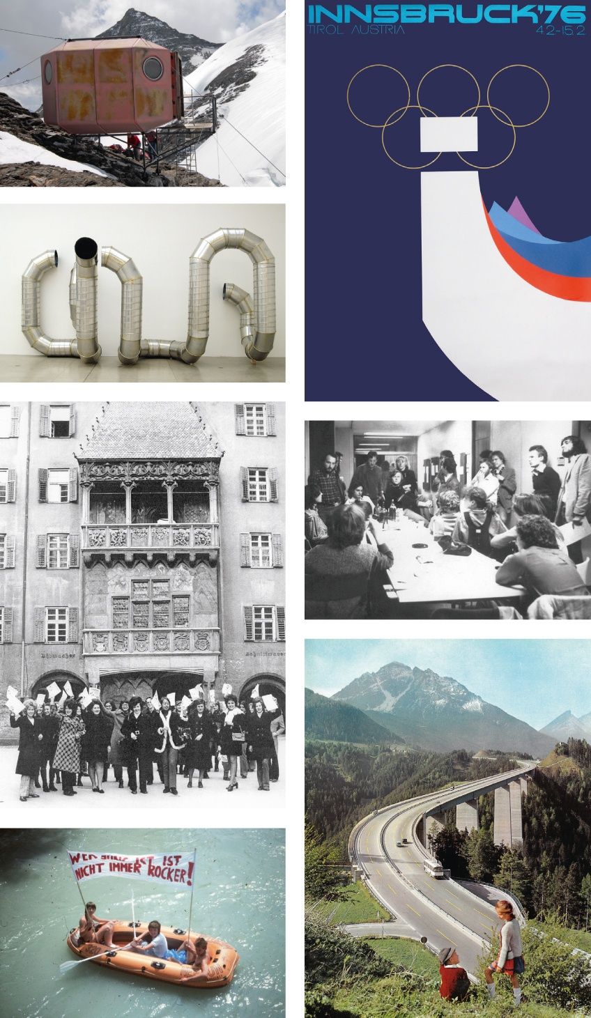 Arno Ritter eine einführung • Christian Mariacher tirol in zahlen • Gretl Köfler zwischen stillstand und aufbruch • Andrea Sommerauer streifzug durch die soziallandschaft der 1970er-jahre • Maurice Munisch Kumar am ende der welt – mit der welt am ende • Albrecht Dornauer innsbruck, die toteste aller toten hosen • Milena Meller hörbarer raum – nicht hörbare musik ... konzepte zu raum und zeit und klang • Günther Dankl kunst schafft (sich) räume. aspekte der kunst der 1970er-jahre und ihre wahrnehmung in tirol. eine betrachtung • Edith Schlocker anregende aufreger. wenn kunst und architektur zu skandalen und skandälchen führen • Otto Kapfinger im Gespräch mit Christian Kühn versuch eines profils von architektur und stadtplanung der 1970er-jahre. tirol im kontext überregionaler tendenzen • Esther Pirchner dokumentation – forum – vision. die tiroler kulturmedien. fenster und horizont als spiegel der architekturlandschaft tirols in den 1970er-jahre • Alexa Baumgartner wohnbau der 1970er-jahre in tirol | teil 1. von der großwohnsiedlung und der alternative als ausnahme • Birgit Brauner wohnbau der 1970er-jahre in tirol I teil 2. wohnen morgen: vom experiment im wettbewerb und realisierten gemeinschaftlichen wohnformen • Wolfgang H. Salcher „die schule war und ist ein politikum“. die pädagogischen utopien und die „neuerfindung“der schule anhand von sechs projekten in tirol • Wolfgang Meixner, Marina Treichl die gründung der baufakultät an der leopold-franzens-universität innsbruck • Elisabeth Senn der anfang: viel energie und eine ahnung • Wolfgang Pöschl AZ 1 und AZ 3 • Georg Pendl notizen zu den 1970er-jahren • Waltraud P. Indrist i – eine stadt sucht ihre identität. oder: von originalen tiroler bauern, bugglkraxn, contergan-mandln, bulldozern und anderen techno-humanen ambivalenzen • Günther Moschig ideen zu einer visionären architektur in tirol. gespräche mit günther feuerstein und charly pfeifle • Claudia Wedekind das bauzentrum innsbruck – eine spurensuche • Anne Isopp welche farben und materialien prägten die architektur der 1970er-jahre in tirol? versuch einer annäherung • Cam nhi Quach so weit die straßen reichen ... ein weg zurück in die zukunft. die bedeutung des tiroler straßenbaus in den 1970er-jahren