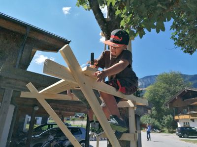 Eine offene Werkstatt in St. Bartlmä, bei der Kinder ab 8 Jahren spielerisch erfahren, wie lustvoll das Bauen mit recycelten Rohstoffen sein kann.