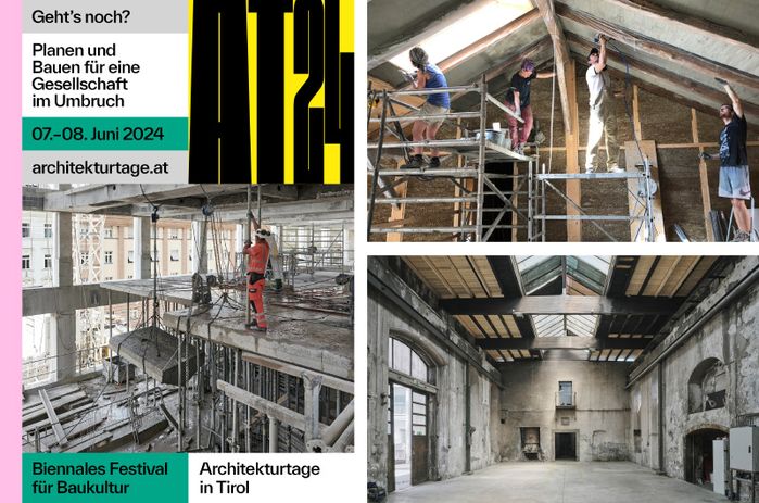 architekturtage 2024Themen wie Bodenversiegelung, Ressourcenverbrauch und der Umgang mit Bestandsgebäuden sind heute in der öffentlichen und medialen Debatte angekommen. Welche Rolle Architektur und Städtebau in dieser Entwicklung spielen und welche zukunftsfähigen Lösungen sie anbieten können, ist inhaltlicher Schwerpunkt der österreichweiten Architekturtage 2024.
