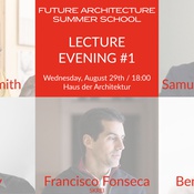 Junge aufstrebende Architekturschaffende, welche die erste Future Architecture Summer School im Haus der Architektur leiten, stellen die Denk- und Arbeitsweisen ihrer Büros/Kollektive vor: RESOLVE | Akil Scafe-Smith (GB), Studiospazio | Samuele Squassabia (IT), Parallel Sprawl | Ibai Rigby (CH), Kollektiv A | Benedict Esche (DE), SKREI | Francisco Fonseca (PT)