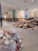 Die Ausstellung ‚Pandemic Waste‘ untersucht Abfall, Leerstände und Mehrkonsum als Begleiterscheinungen der Covid-19 Pandemie. Zum direkten Schutz der Menschen vor dem Virus werden Einwegmasken, Test-Kits und Plastikschutz eingesetzt. Die dadurch entstehenden Berge an Sondermüll werden als unvermeidbarer Kollateralschaden hingenommen. Wie wirkt sich das Gebot des Händewaschens auf den Wasserverbrauch aus, wie die zunehmende Beliebtheit der Essenszustellung auf den Kartonverbrauch und wie das Home-Office auf den Büroleerstand? Studierende der Uni Kassel haben sich diesen und weiteren Themen angenommen um diese Informationen räumlich-grafisch als Ausstellung wiederzugeben.