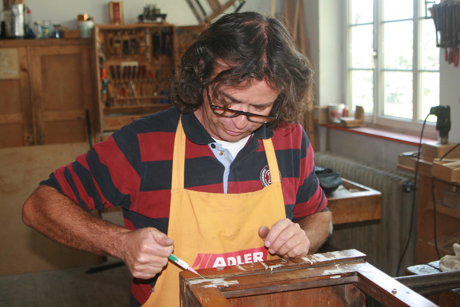 Johannes Widerin hat die Fachschule für Tischlerei und Raumgestaltung in Hallein besucht und anschließend die Meisterklasse der Fachschule absolviert. Im Betrieb des Vaters hat er das bodenständige Tischlerhandwerk gelernt, dem er bis heute treu geblieben ist. Gediegenes Handwerk zeichnet seine Arbeit aus, die sich der Instandsetzung und Restaurierung von Holzmöbeln aller Art widmet. Eine besondere und mittlerweile selten gewordene handwerkliche Fähigkeit – dem Umgang mit Geflechten - hat sich Johannes Wiederin beim Korbflechter Franz Pacher in Anif angeeignet. Die Liebe zum Handwerk und dem Werkstoff Holz ist in der Werkstatt Widerins überall zu spüren und das Werkzeug des Großvaters leistet immer noch seine Dienste.