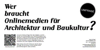 Anonyme Onlineumfrage über die Aufgaben und den Nutzen von Onlinemedien zum Thema Architektur und Baukultur.