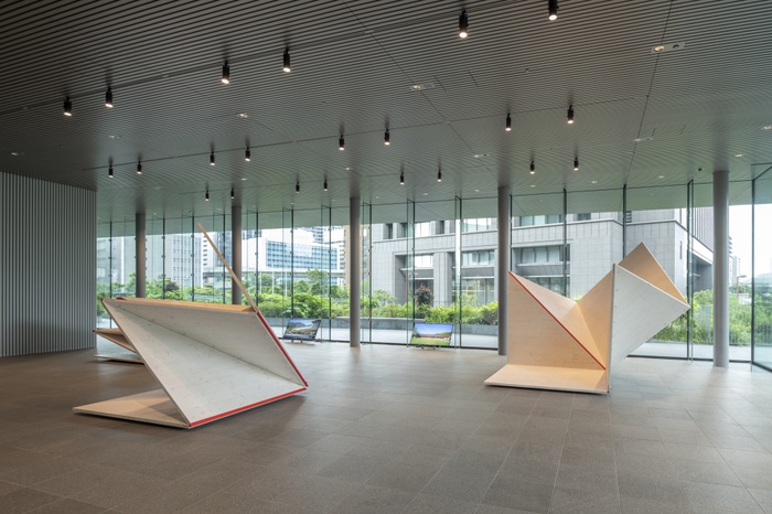Die drei Holzskulpturen von „verywood“ öffnen sich wie übergroße Origami in Anspielung auf die Tektonik heutiger Holzarchitektur mit flächigen Werkstoffen. Der Zauber von Holz liegt in seiner Schönheit und Flexibilität, seiner Leichtigkeit und statischen Kraft. Die Relevanz als Baumaterial der Zukunft verdankt Holz der regionalen Verfügbarkeit und seiner rundum positiven Klimawirksamkeit.