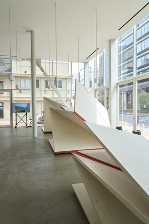 Die Holzskulpturen von Atelier Andrea Gassner in dieser Schau öffnen sich wie übergroße Origami in Anspielung auf die Tektonik heutiger Holzarchitektur mit flächigen Werkstoffen. Der Zauber von Holz liegt in seiner Schönheit und Flexibilität, seiner Leichtigkeit und statischen Kraft. Die Relevanz als Baumaterial der Zukunft verdankt Holz der regionalen Verfügbarkeit und seiner rundum positiven Klimawirksamkeit.