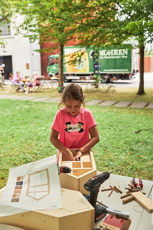WorkshopDer Kindersommer im Stadtgarten ist eine Kooperationsveranstaltung von vai Vorarlberger Architektur Institut, inatura - Erlebnis Naturschau Dornbirn, Kunstraum Dornbirn und Stadtmuseum Dornbirn.