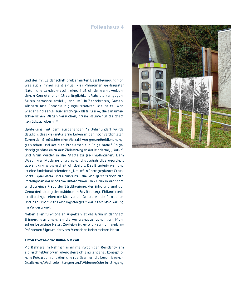PublikationSeit Sommer 2016 bietet das afo architekturforum oberösterreich ArchitektInnen und KünstlerInnen die Möglichkeit, jeweils vier bis sechs Wochen in der hauseigenen Atelierwohnung zu leben und zu arbeiten. Die Auseinandersetzung während des Aufenthalts fokussiert auf den Themenkomplex Raum, Architektur und Stadt. Die bisherigen Gäste waren die Szenografin Nadia Schrader (D), die bildende Künstlerin Josephine Sweeney (UK), der Architekt und Urbanist Martin Benavidez (ARG) und der Fotokünstler Pio Rahner (D).