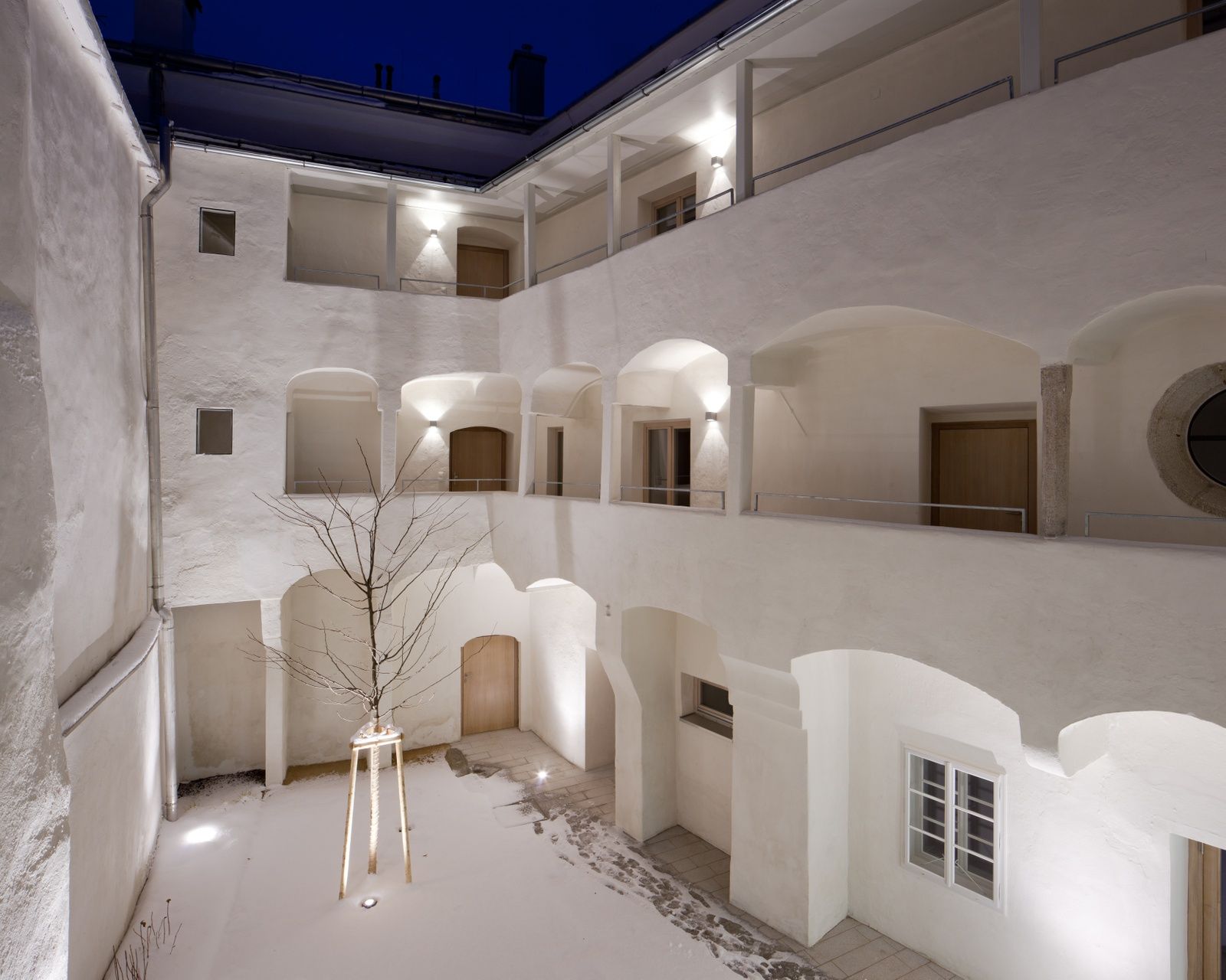 Wir beginnen den ersten Baukultur-Stammtisch in Freistadt mit einer Führung durch das von pointner | pointner architekten 2010 umgesetzte Projekt „Wohnen beim Böhmertor“ und setzen uns anschließend in der ehemaligen Kapelle des Hauses zu Tisch.