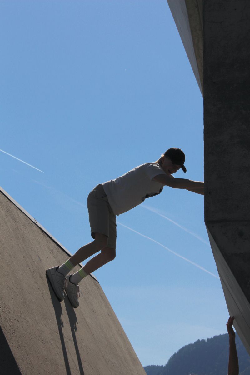 Martha Labil führt „Ohne Worte“ und auf ganz spezielle Weise durch das wunderbare STEINHAUS von Günther Domenig. Gemeinsam wird dieser Ort mit allen Sinnen erkundet. Voller Neugier und Aufmerksamkeit sammeln die Kinder gemeinsam mit Martha Eindrücke, begreifen den Raum, begehen und vermessen ihn. Nach der Erkundungstour gibt es eine kleine Pause, bei schönem Wetter im Garten. Danach werden die gesammelten Eindrücke aktiv umgesetzt in Spiele und Übungen: Pantomime, Akrobatik, Vertrauen, Balance, Gruppendynamik.