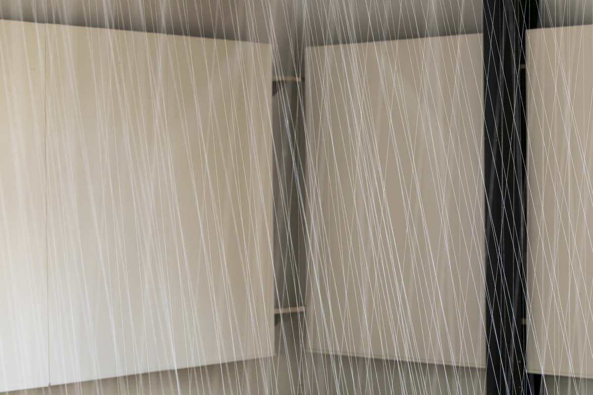 Die Künstlerin Elke Maier konzipiert eine Rauminstallation für das Architektur Haus Kärnten, deren Idee, Form und Realisierungsprozess untrennbar verbunden sind mit der Authentizität des Ortes in all seiner Vielfalt und Komplexität, die von daher einzigartig und auf keinen anderen Ort übertragbar ist und mit der sie ganz bewusst in den Raum eingreift. Mit Hilfe eines einfachen Materials, feinstes weißes Baumwollgarn, entsteht ein einzigartiges auratisches Wechselspiel zwischen Licht, Raum und Materie. Mit einem Minimum an Material und Gewicht gelingt es ihr, voluminöse Raumlandschaften von atmosphärischer Dichte zu erzeugen. Dabei handelt es sich nicht um punktuelle Interventionen, sondern um eine Entwicklung des Werkes von Anfang an in kontinuierlichem Dialog mit dem Raum und Licht. Die Fäden schaffen einen von der Raumschale, den Wänden völlig losgelösten, selbstständigen Raumkörper. (Nora Leitgeb)