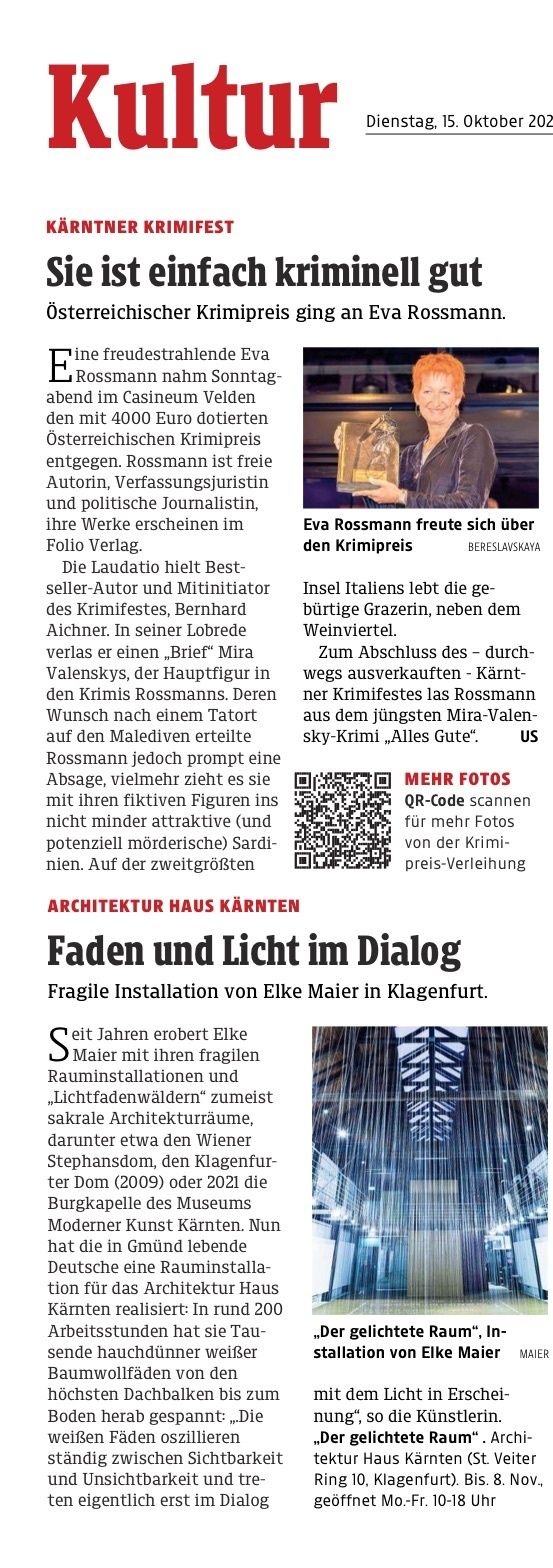 Kleine Zeitung "Faden und Licht im Dialog"