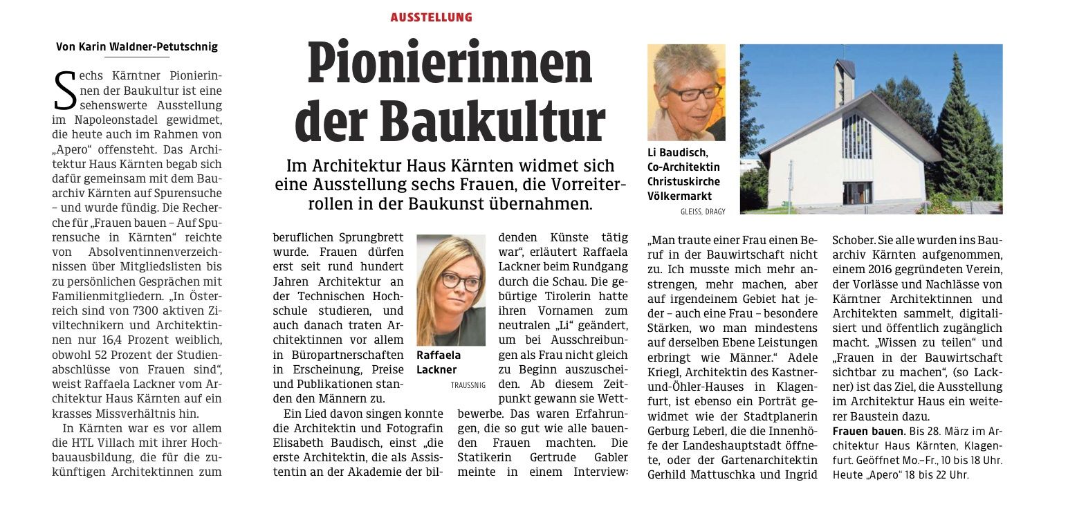 Kleine Zeitung: „Pionierinnen der Baukultur“