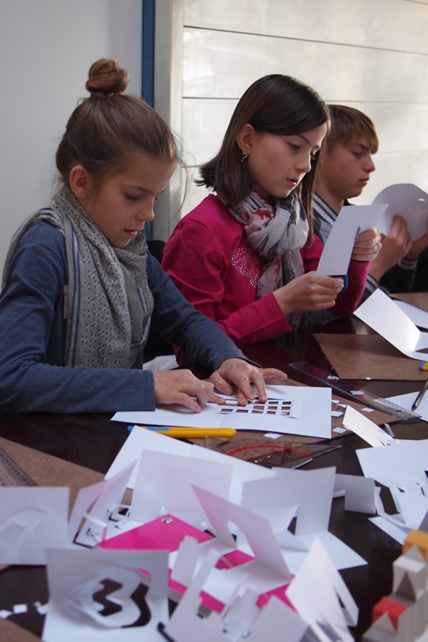 Das erfordert ziemlich viel Vorstellungsvermögen und auch etwas Geschick mit Lineal und Cutter - also Fähigkeiten, die auch ArchitektInnen haben müssen. Ganz einfach ist es nicht, aber mit ein bisschen Fantasie und Geduld schaffen auch wir ein kleines Stück Pop-up Architektur.