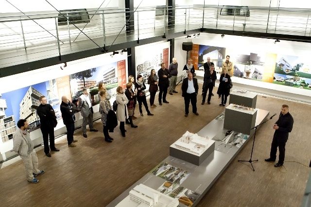 Die Ausstellung von Robert Potokar unter dem Titel "Kontext in der modernen Architektur" wurde mit vielen Besuchern aus Slowenien und Kärnten eröffnet. Unter den Gästen war auch Dragica Urtelj, Generalkonsulin der Republik Slowenien in Klagenfurt, die spontan eine Laudito hielt. Nach einleitenden Worten von Luka Skansi, dem Author der begleitenden Publikation, führte Architekt Robert Potokar durch seine Ausstellung und erläuterte seine Arbeitsweise.