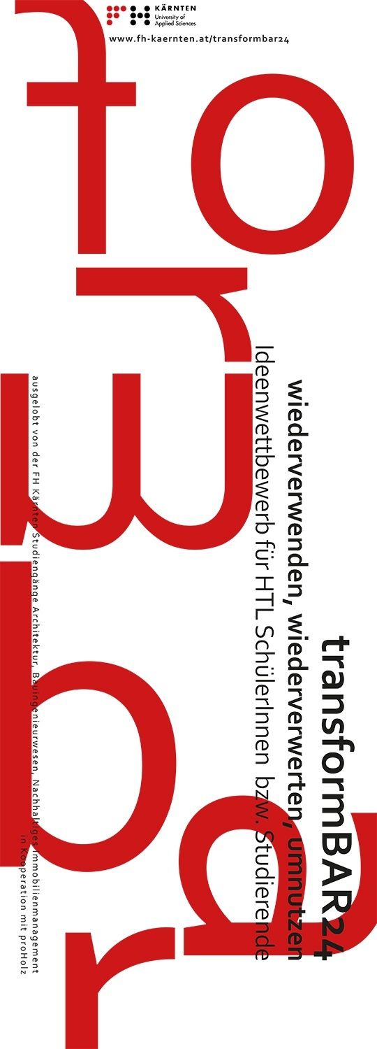Bekanntgabe der ErgebnisseGanz im Sinne der Schwerpunkte des Studienganges Architektur an der FH Kärnten - Bauen mit Bestand und Bauen mit Holz - soll durch Wiederverwenden, Wiederverwerten, Umnutzen und Umbauen von bestehenden Thekenelementen zeitgemäße Lösungen für eine Bar+ von HTL Schüler:innen bzw. Architektur Studierende im Zuge des Ideenwettbewerbs transformBAR24 entwickelt werden.