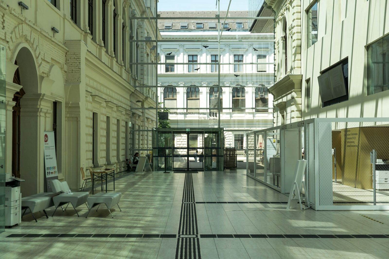 FührungDer Rundgang führt Sie zu Universitätsbauten aus drei Jahrhunderten, die nicht nur unterschiedlichste architektonische Sprachen aufweisen und vereinen, sondern auch widerspiegeln, wie sich das Verständnis von Bildungsräumen und die Anforderungen an sie im Laufe der Zeit verändert haben. Die besuchten Gebäude der TU, Kunstuni und Universität Graz zeigen, wie sich der Humboldt’sche Raum des zurückgezogenen „Für-sich-Lernens“ zu einem Kommunikationsraum entwickelt hat und wie sich die Universitäten und ihre Räume zunehmend für die Stadtgesellschaft öffnen und zu multifunktionalen Orten werden. Von Umbauten denkmalgeschützter Gebäude der Moderne über Einbauten in historische Bauten, über einen Baldachin über ehemaligen Stallungen und einen Twist aus Beton, über die Grazer Schule und den radikalen Umbau einer historischen Bibliothek führt der Spaziergang Sie schlussendlich zum Entwurf für einen der größten Universitätsbauten Österreichs, der ab 2024 an Stelle der heute nicht mehr genutzten Vorklinik realisiert wird.